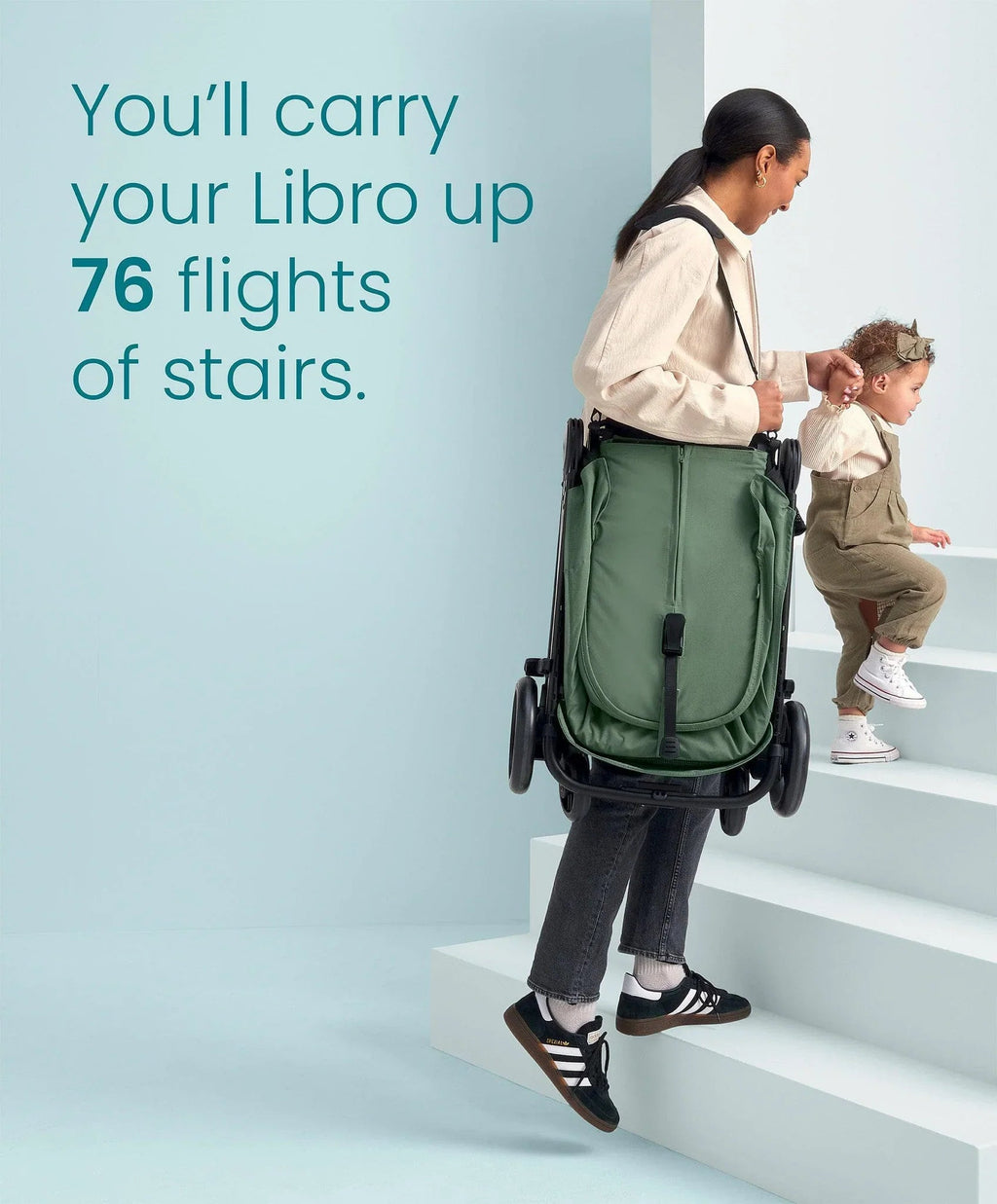 The next-stage stroller that’s designed for the reality of everyday. With our much-loved one-hand fold, for ease and speed. Ultra-lightweight, at just 7kg – a similar weight to a 6-month old, it’s easy to carry, using the handy carry strap. Ultra-slim when folded - only 10cm wide, not including wheels – it slides easily into all the small gaps, from your jam-packed car boot to behind the front door. Features a higher and more spacious seat – so there’s more space to spread out and more leg room for your growing toddler. Packed with features designed to be useful in everyday life, including easy-access large storage basket and XL hood made with UPF 50+ rated fabric with 4 customisable levels of ventilation for babies comfort, and all-weather protection. With complete adjustability throughout – including adjustable height handlebar, leg rest, hood coverage and lay-flat seat recline – Libro adapts to match a growing family’s ever-changing needs. In Liquorice, a bold black-on-black design. Suitable from birth to toddler.
