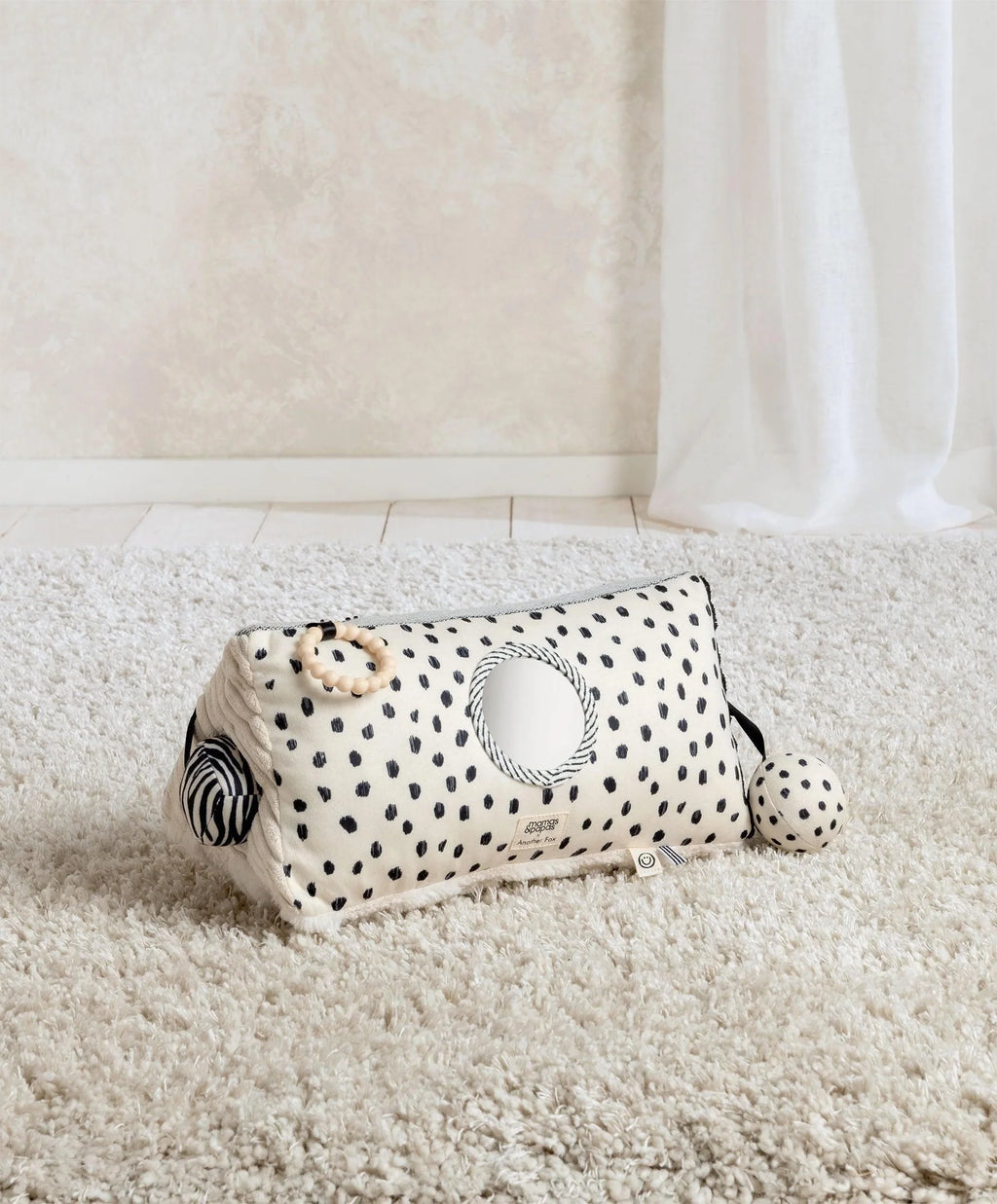 Designed to catch little eyes from day one, this activity-packed triangle features bold black-and-white patterns to support early visual development. Its distinct, playful prints - by independent fashion brand Another Fox - and three interactive sides are full of surprises, including crinkles, chimes, textures and hanging toys to squeeze, grasp and explore. Perfect for encouraging baby to reach and using for tummy time fun, it helps build strength while turning playtime into a mini adventure.