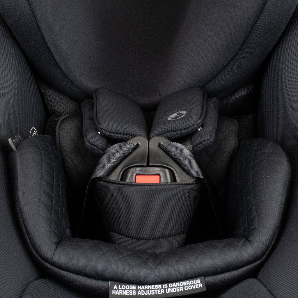 Magnetic harness holders keeps the harness out of the way for hassle-free buckling.