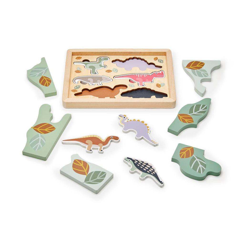 This 6 set of dinosaur wooden puzzles is a fun and educational toy for children.