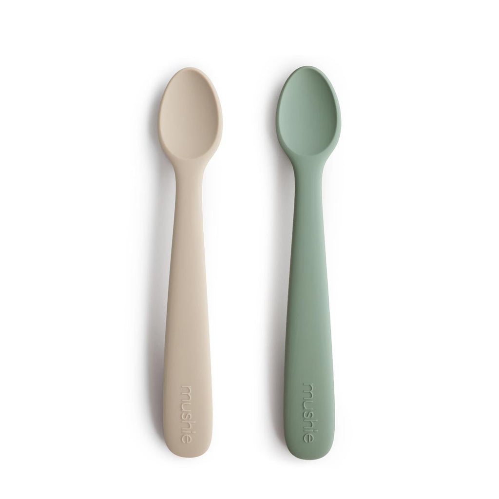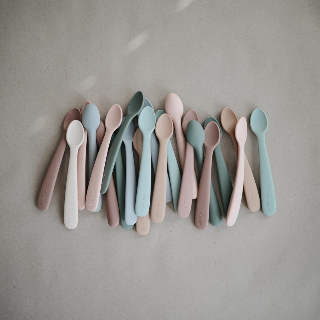Introduce your baby to solid food with Mushie's silicone feeding spoons. They are made of chemical free material, and the soft silicone tip protects your baby's sensitive gums and newly grown teeth.
