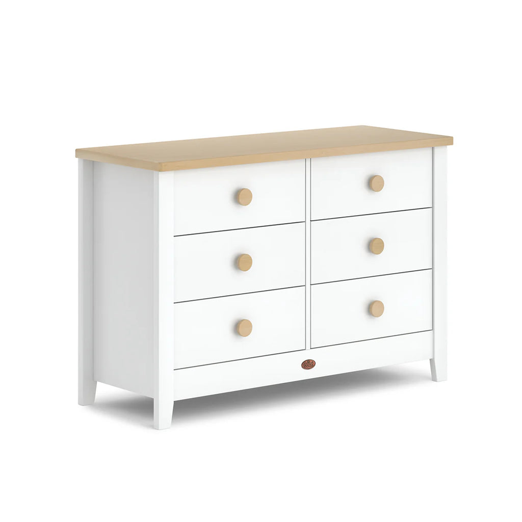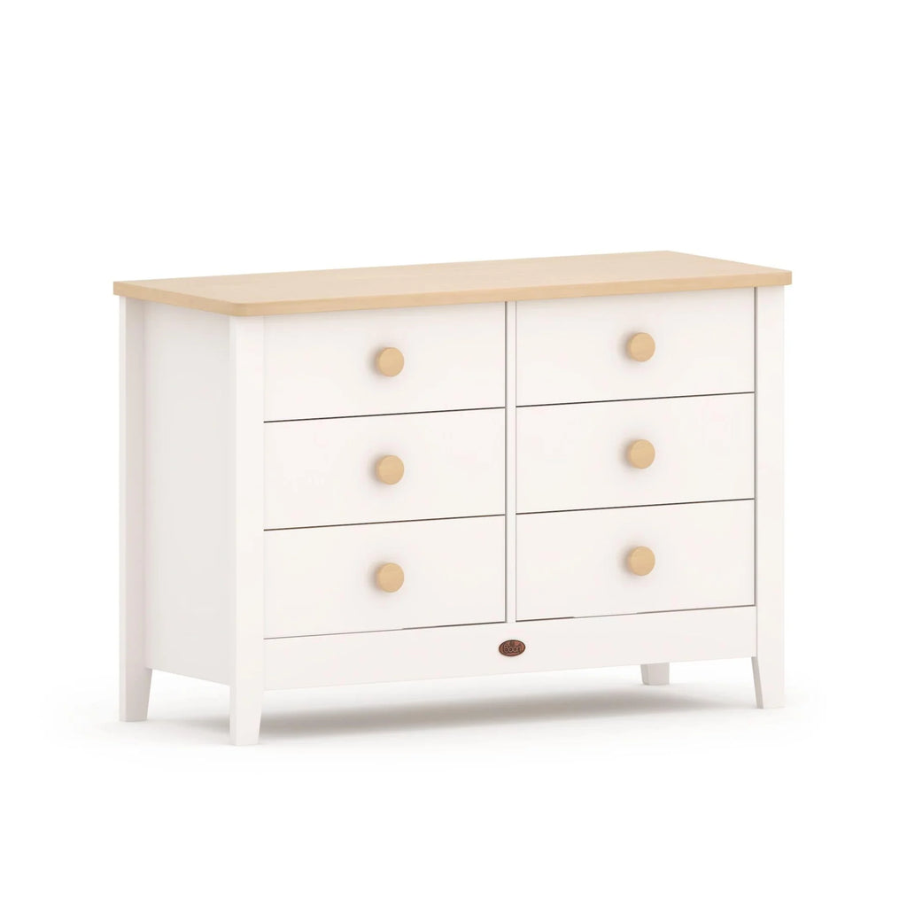 With a stylish two-tone design including a natural wooden top and rounded handles, this chest of drawers is designed to complement a range of Boori furniture.
