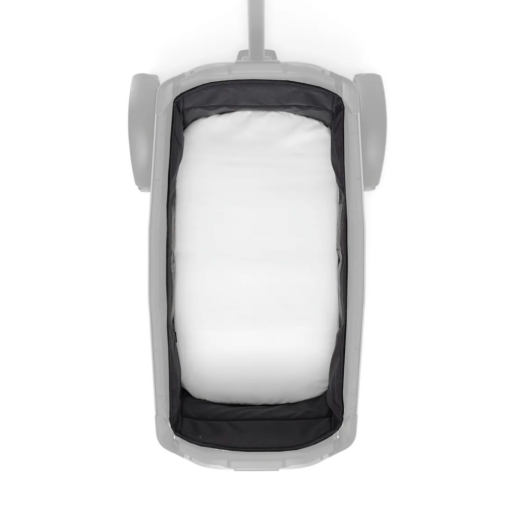 Veer’s Nap System turns your Cruiser into a JPMA safety certified Bassinet, making your Cruiser the ultimate rest stop or changing station for young ones. (The Nap System is suitable from birth up to 9 kg and 69 cm, whichever comes first or until your infant pushes up on their hands and knees.) A soft, removable mattress pad is included. The Nap System includes magnets built into its cleanable sidewalls that keep it snug to the Cruiser sidewalls, and includes four bungee connection cords that attach to the seat backs to keep little ones safe. A bug shield that zips on a sun canopy to cover the Cruiser is included (retractable sun canopy sold separately). The Nap System makes a great changing station as well. The Nap System compactly folds up into a storage bag that mounts to Cruiser and it also fits in the Foldable Storage Basket when not in use.