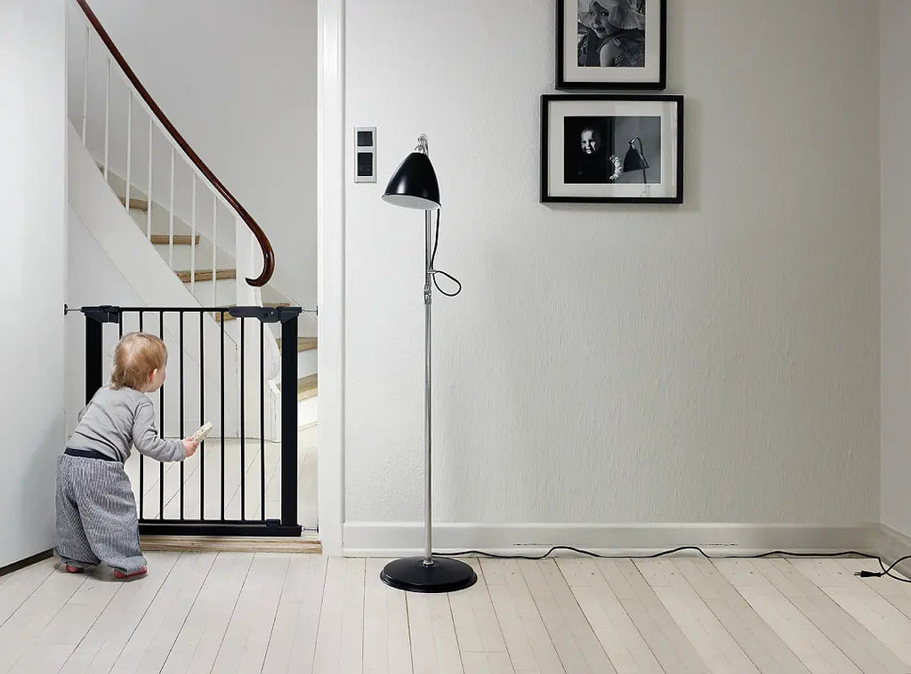 The pressure gate option is very popular as you can avoid drilling into the walls or door frames (beware that other pressure gates require wall cups at all times which in turn are installed with screws). The gate door opens in both directions and has a cross bar at floor level which may pose a trip hazard and care needs to be taken when installing the gate near stairs or steps.