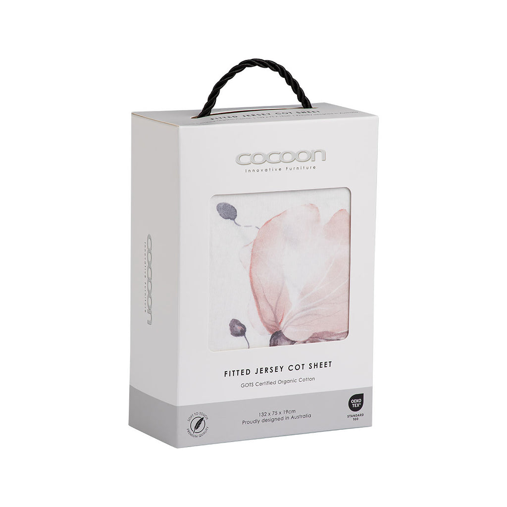 Cocoon Fitted Cot Sheet – Floral Art design is exclusive to Cocoon brand. Made with Soft and cozy to feel material for year-round use.