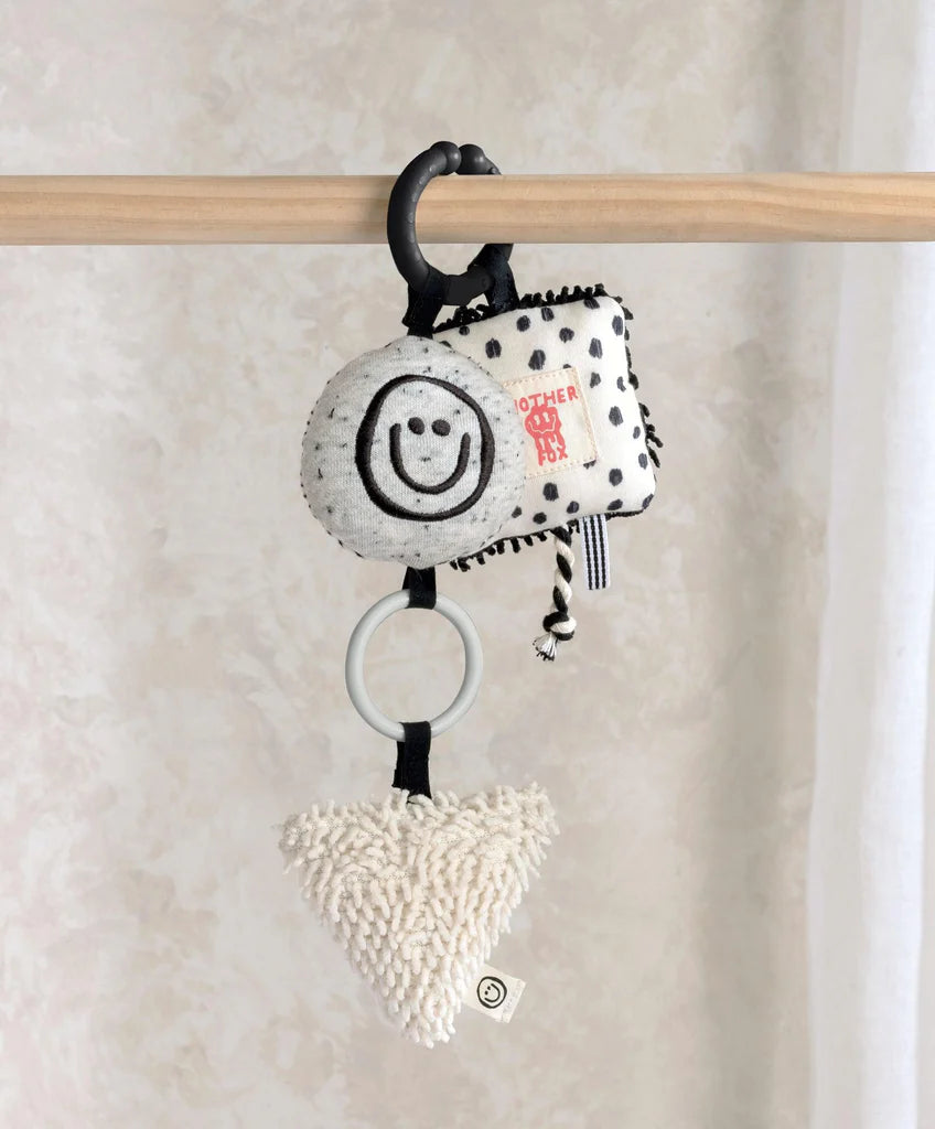 Designed with baby's essential early development in mind, this playful linkie features high-contrast black and white patterns to help stimulate visual focus from day one. Part of our exclusive collaboration with Another Fox, its punchy prints and sensory surprises are perfect for keeping little ones wildly entertained on the go. Simply clip it to their pushchair or carrycot, and watch as they grab, grasp, and explore exciting textures and sounds. Plus, with a handy C-ring teether, it's a soothing teething toy too.