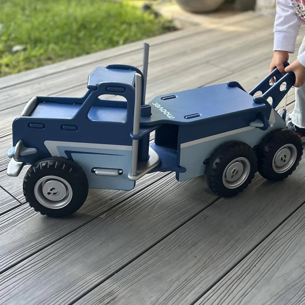 The Mack Trucks are Moover Toys’ biggest truck to date. The truck is a tough and sturdy ride-on truck with space in the back for transporting treasures to and fro and detachable crane.
